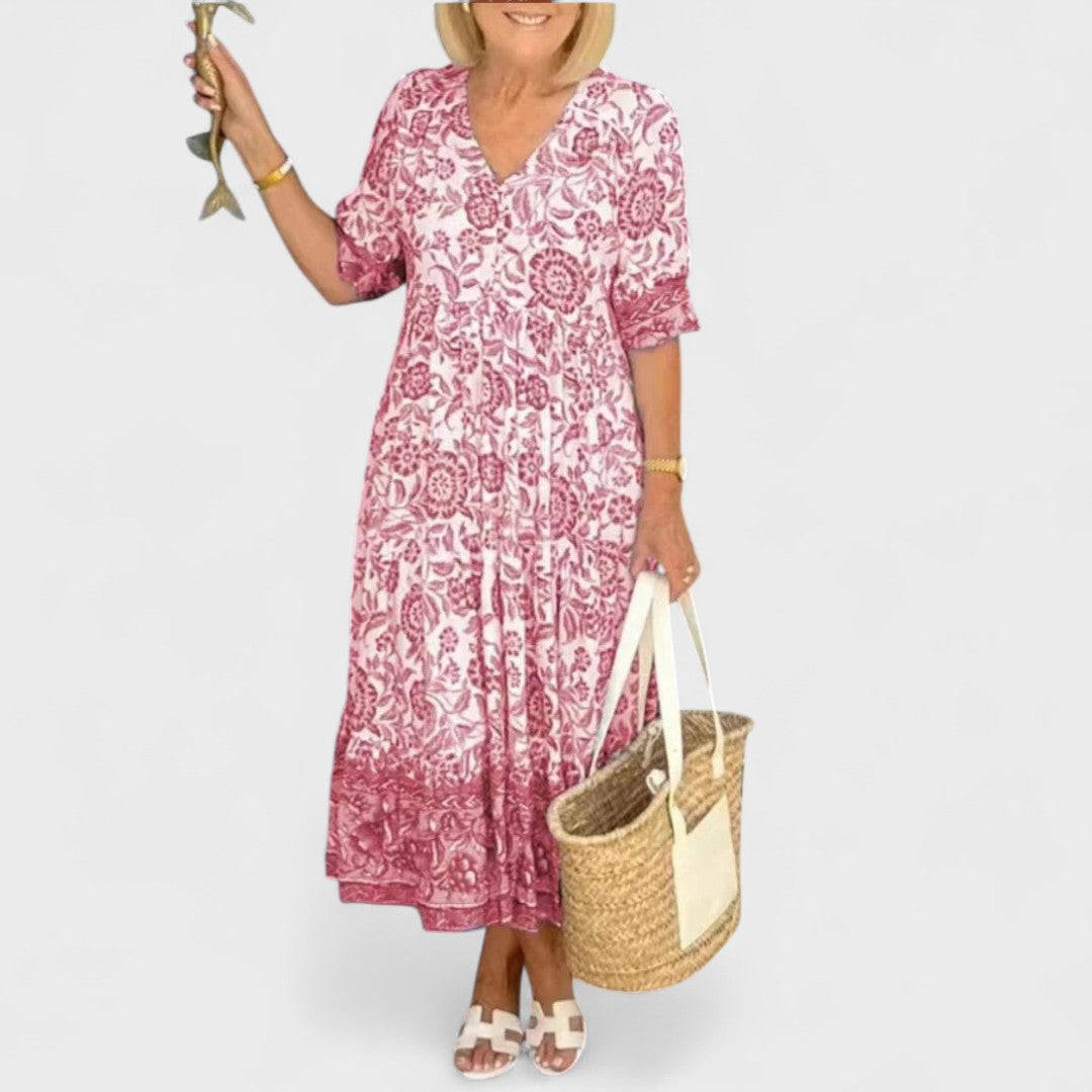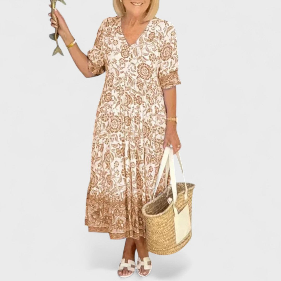 Stile Floreale Unico: Con un motivo floreale affascinante, l'abito Emilia™ incarna la bellezza della primavera, rendendoti protagonista di ogni evento con il suo charme naturale.