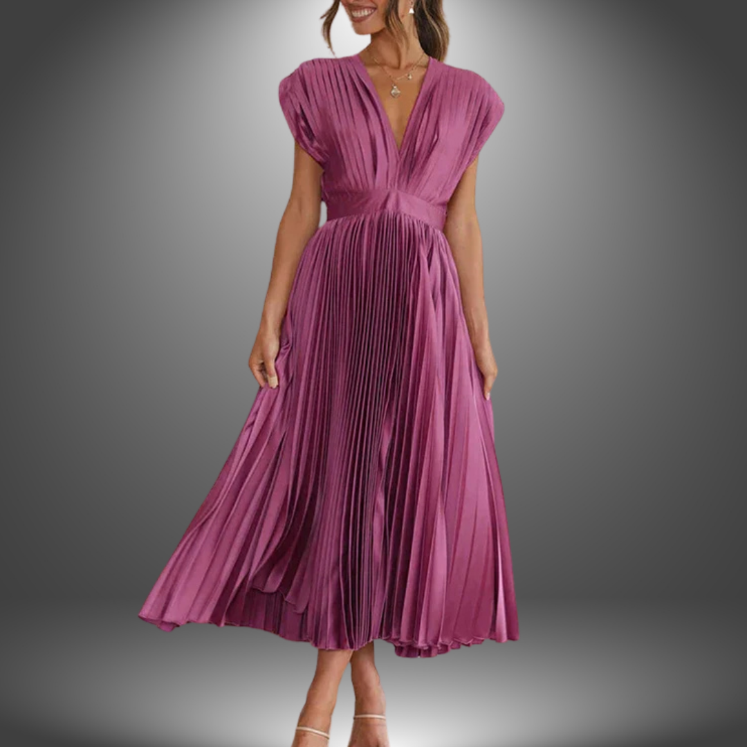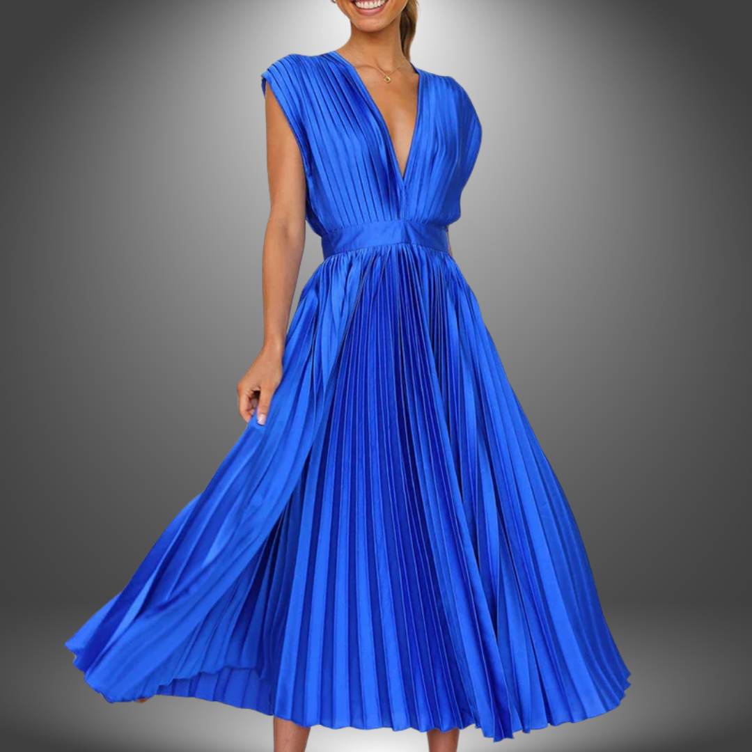 Se stai cercando un vestito che unisca eleganza e comfort, Gloria è la scelta perfetta! Questo abito da donna, con il suo design senza maniche e le delicate pieghe, è il nostro articolo più amato ed è ideale per ogni occasione. Senti la sicurezza di indossare un capo che esalta la tua femminilità e il tuo stile unico.